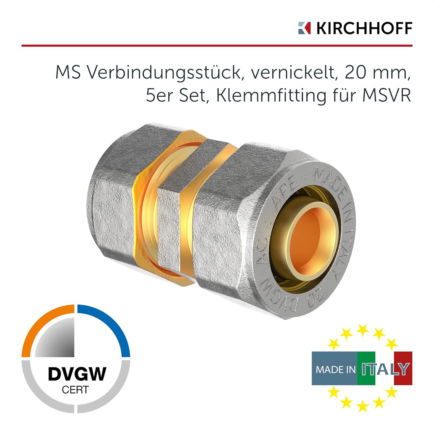 KIRCHHOFF | MSVR Rohr | 5er Set | Klemmringverschraubung 20 mm | Aluverbundrohr | für Heizung | Fuss