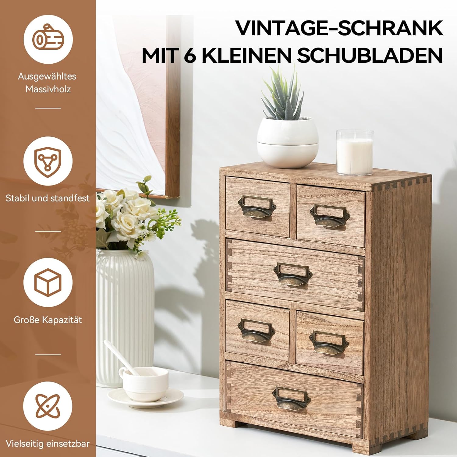 - [CUTE DESIGN] Diese hölzerne Aufbewahrungsschrank kommen mit 6 Mini-Schubladen, und jede Schublade hat einen Metallgriff und Etikettenhalter, die leicht zu öffnen und zu suchen ist.