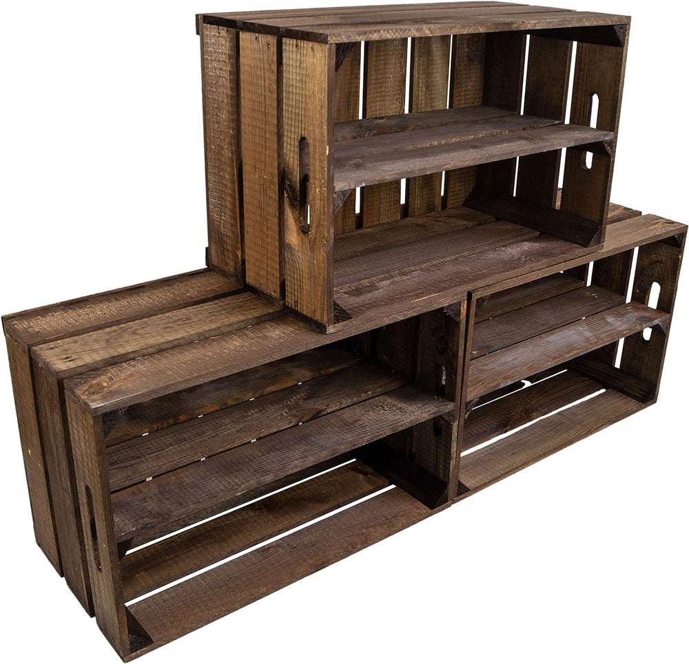 - 3 Stück einzigartige Obstkiste mit bereits montiertem Mittelbrett