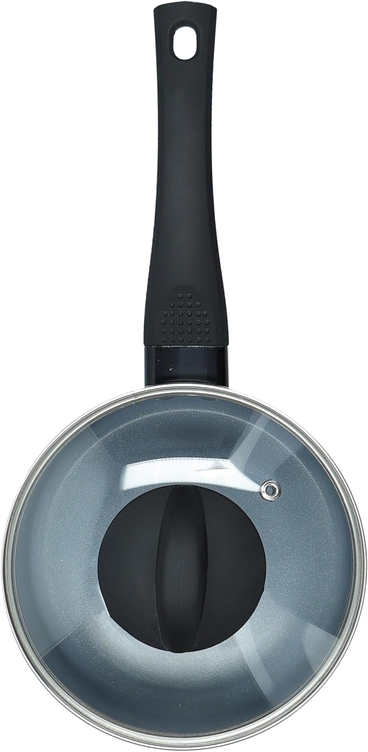 - Beinhaltet einen Deckel aus Hartglas mit Entlüftungsöffnungen. Dadurch wird Dampf abgelassen und verhindert, dass der Topf beim Kochen überläuft