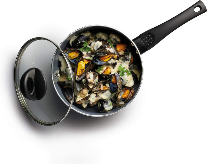 - Hergestellt aus Aluminium mit einem stehts kühl bleibenden Griff und einer Basis aus hartem Eisen, wodurch für Langlebigkeit und bessere Wärmeverteilung gesorgt wird. Für Induktionskochfelder geeignet