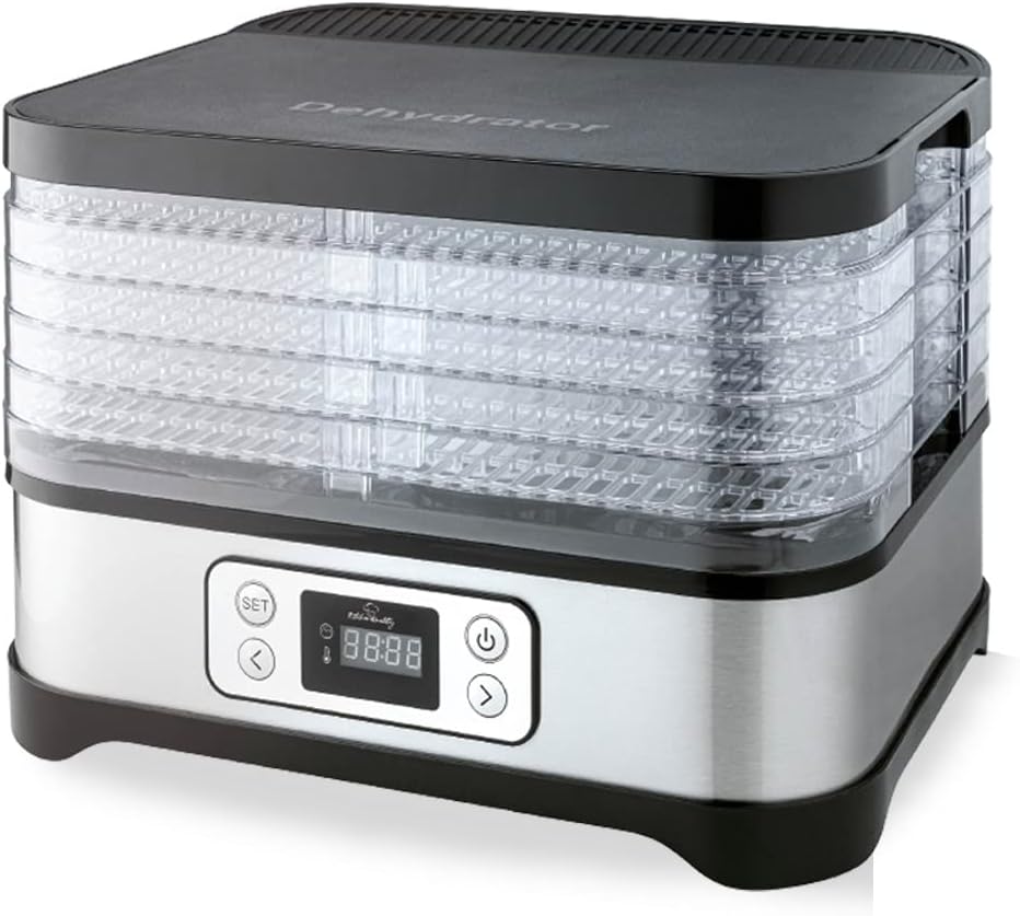 - 𝗟𝗜𝗘𝗙𝗘𝗥𝗨𝗠𝗙𝗔𝗡𝗚: Unser elektrischer Dörrautomat wird mit 5 variablen Trockenebenen, Timerfunktion, Überhitzungsschutz und Bedienungsanleitung ausgeliefert.