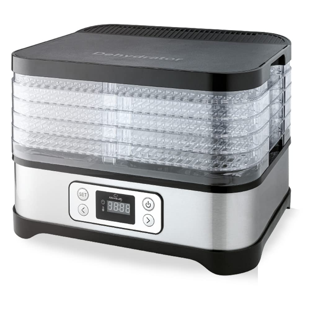 - 𝗟𝗜𝗘𝗙𝗘𝗥𝗨𝗠𝗙𝗔𝗡𝗚: Unser elektrischer Dörrautomat wird mit 5 variablen Trockenebenen, Timerfunktion, Überhitzungsschutz und Bedienungsanleitung ausgeliefert.