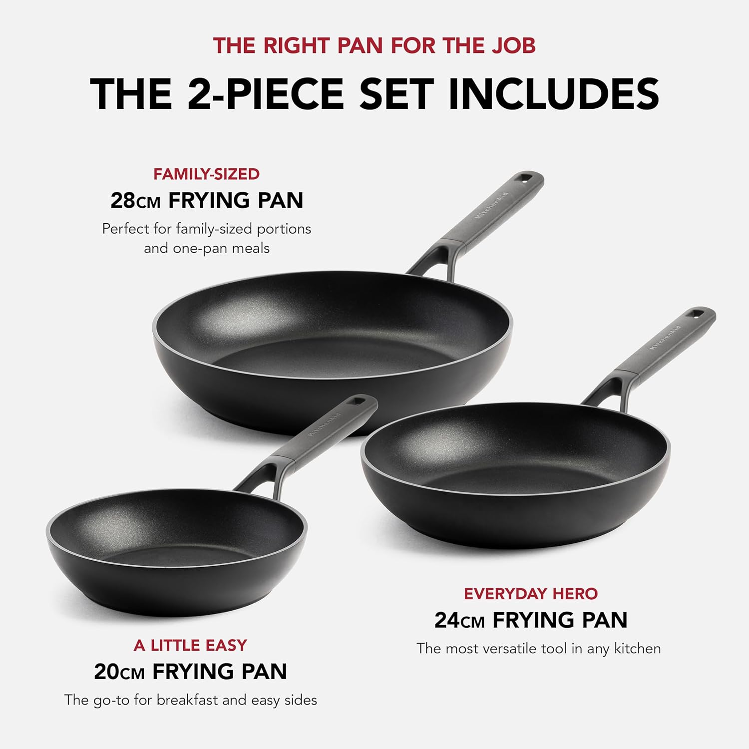 - Set enthält: 20cm, 24cm und 28cm Bratpfannen