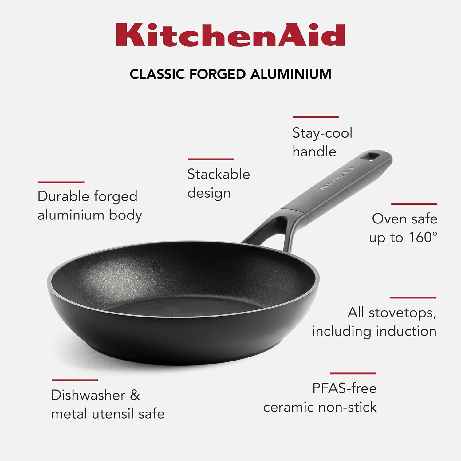 - Hergestellt aus hartanodisiertem Aluminium und einem dicken Boden, der seine Form beibehält und eine schnelle Erwärmung ermöglicht