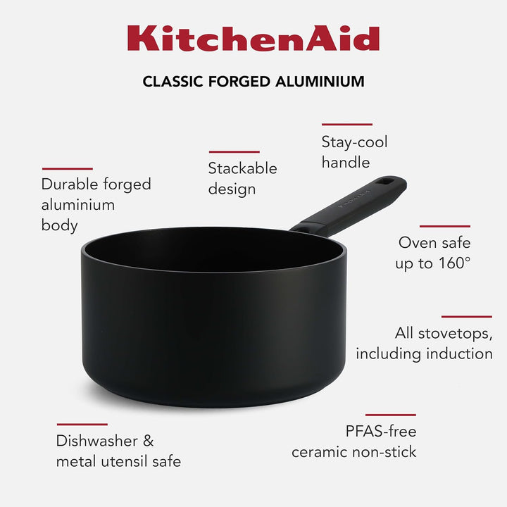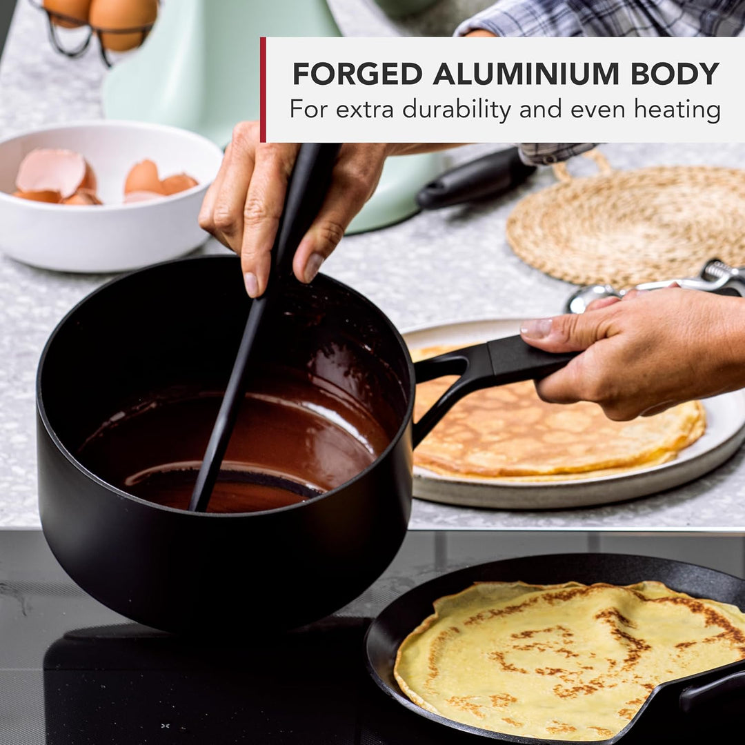 - Hergestellt aus hartanodisiertem Aluminium und einem dicken Boden, der seine Form beibehält und eine schnelle Erwärmung ermöglicht