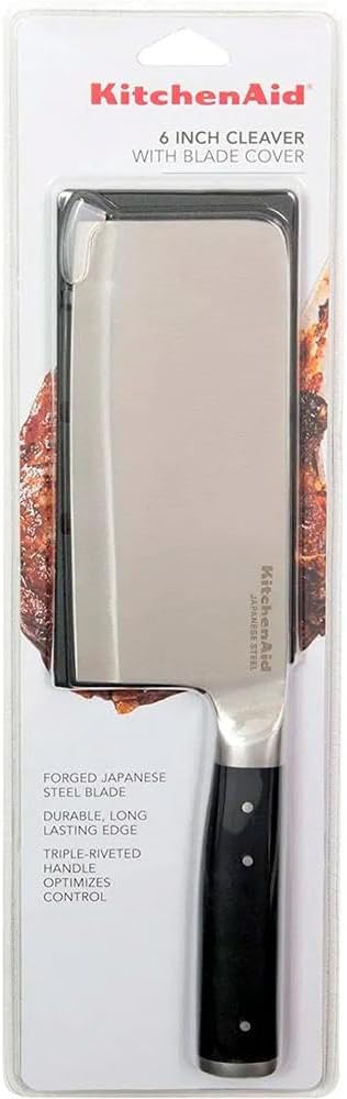 - CUTTING ESSENTIAL: The KitchenAid 6 inch kitchen cleaver is designed to easily carve through tough or tender meat and dense vegetables with one downward stroke. The ideal knife for prepping any meal, from steaks to stews