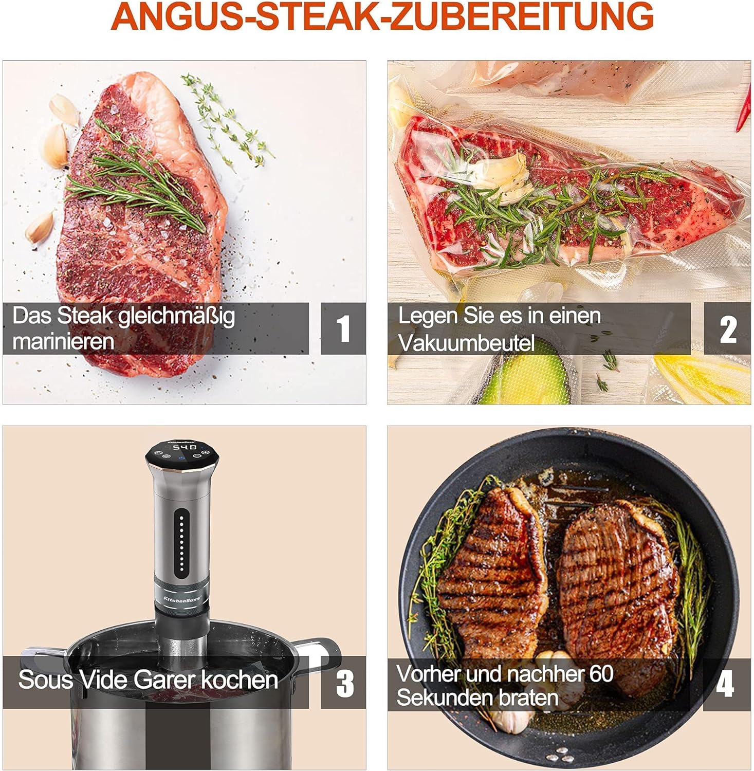 - Safe & IPX7 Wasserdicht: Nach IPX7 wasserdicht Zertifizierung,der Sous Vide von Kitchenboss garantiert einen sichereren Betrieb und einen viel längeren Betrieb, frei von der Gefahr, dass Dampf durch die innere Maschine dringt.