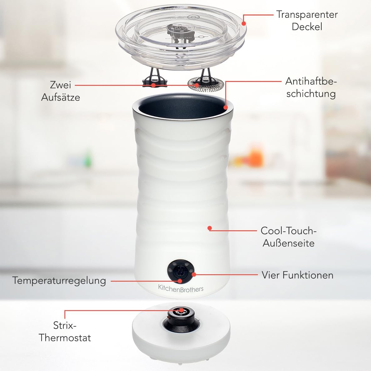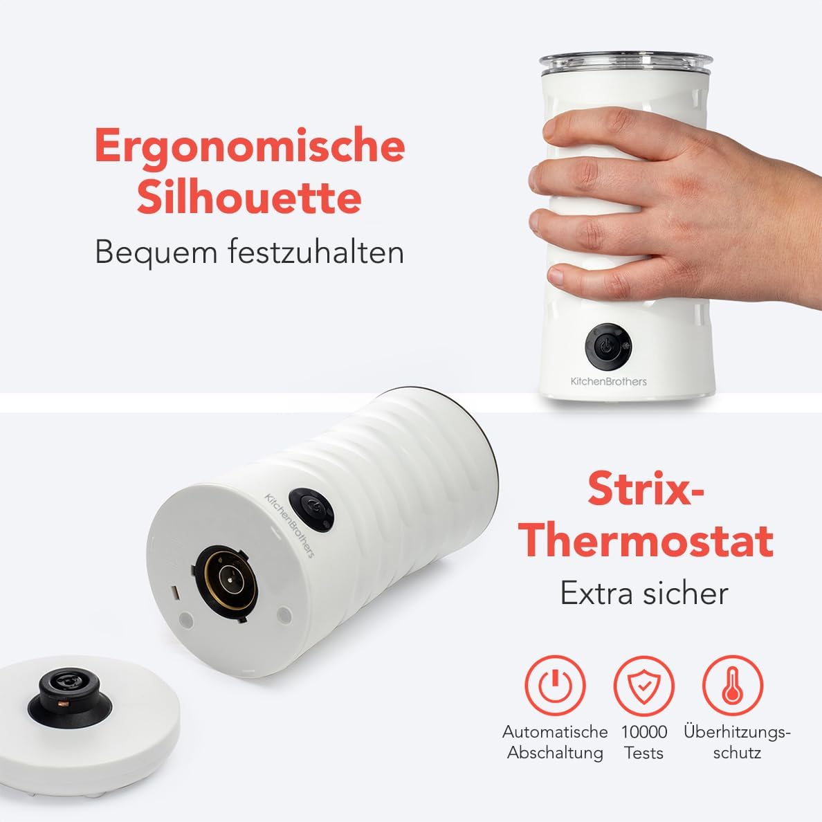 - ✅ SICHER & ZUVERLÄSSIG: Der Milk Frother schaltet sich automatisch ab, wenn Ihre Milch oder Ihr Milchschaum fertig ist. Durch diese automatische Abschaltfunktion und den Überhitzungsschutz gewährleisten wir 100%ige elektrische Sicherheit des