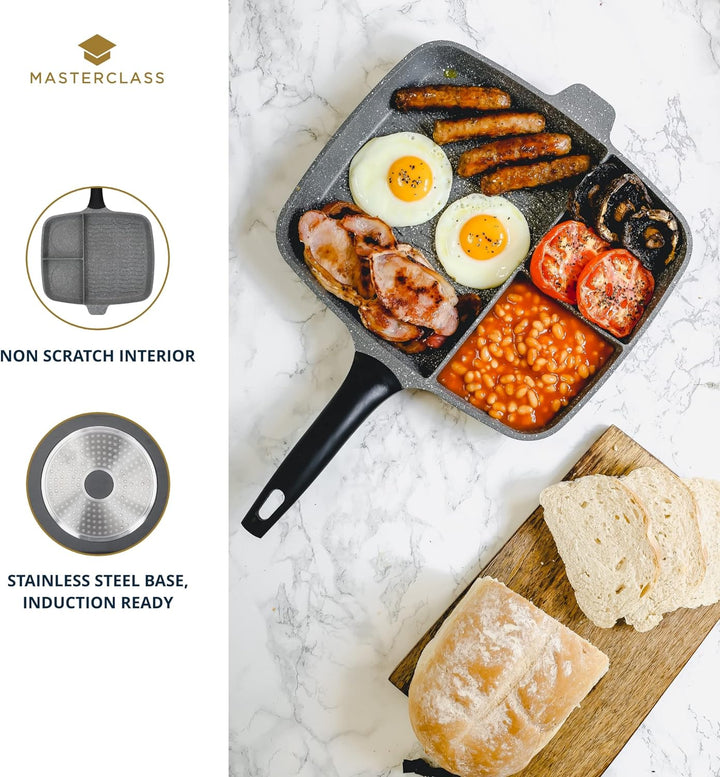 - Grillen leicht gemacht: geriffelte Aluminium-Grillpfanne mit Edelstahlboden und 3 abgeteilten Grillbereichen, braten sie Rührei, Speck und Toast für ein leckeres Frühstück, alles in einer Pfanne