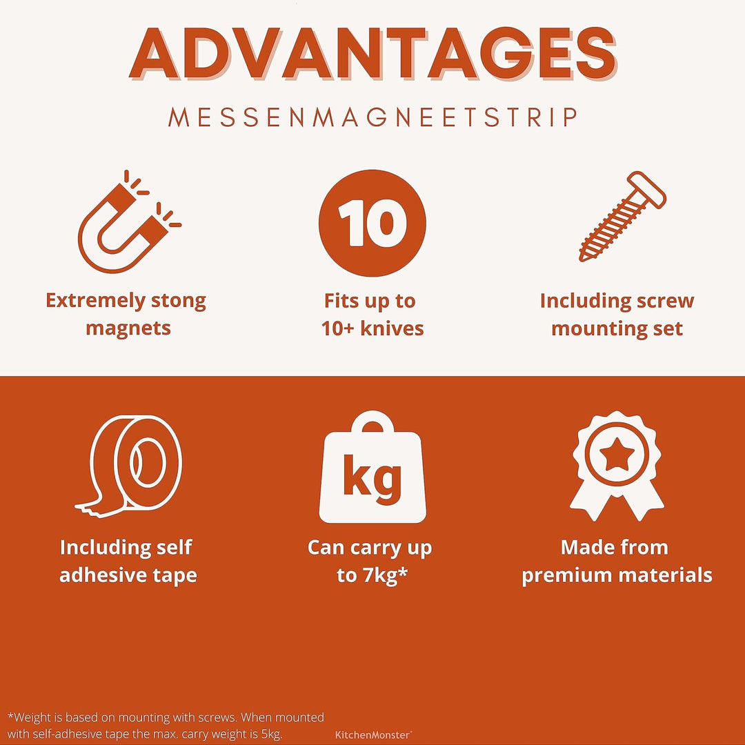 - Unsere Magnetleiste selbstklebend ist der ideale magnetische Messerblock für Ihre Küche. Einfach an der Wand angebracht, bietet sie sicheren Halt für Ihre Messer und spart wertvollen Platz.