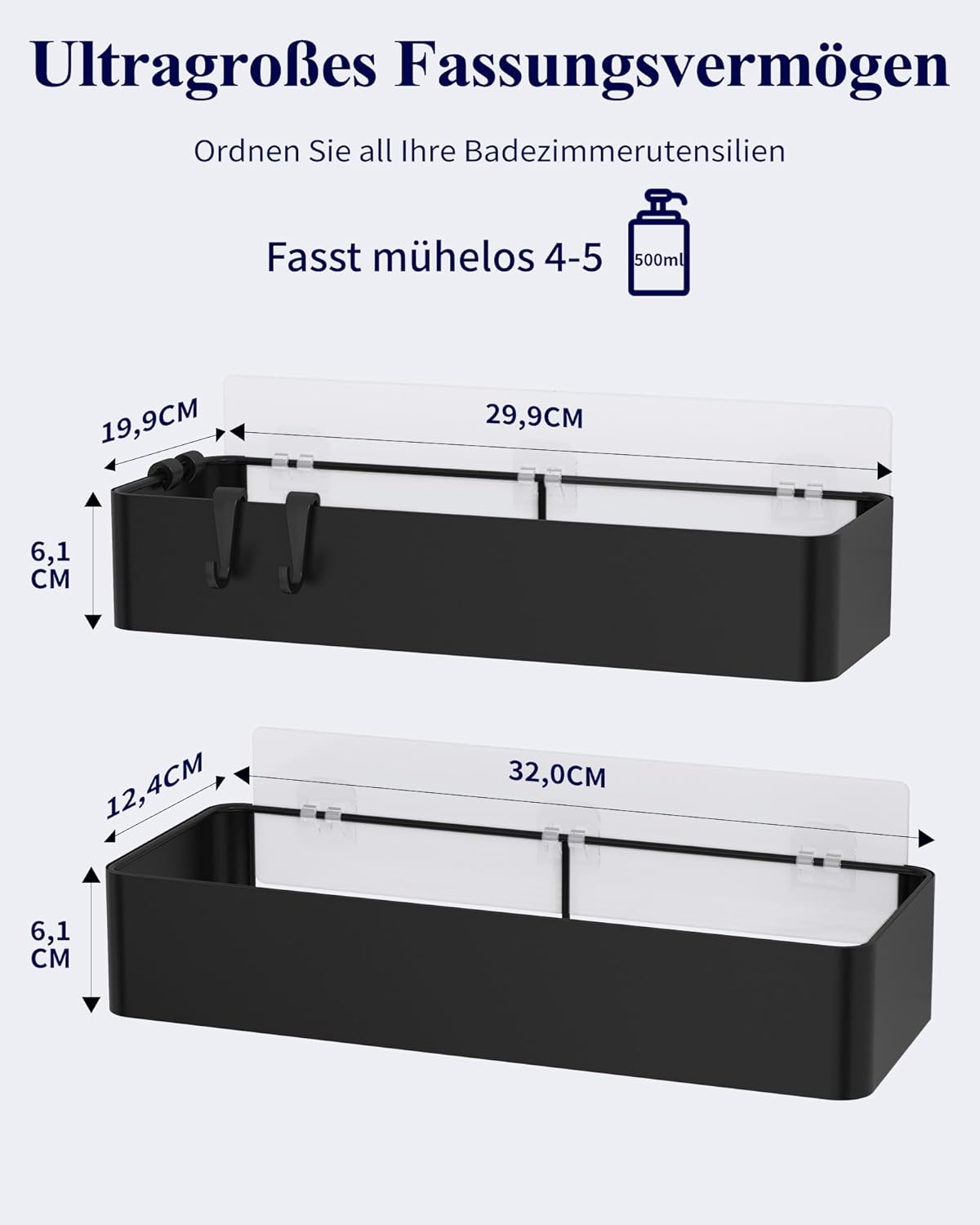 Kitsure Duschablage ohne Bohren - 2 Stück rostfreie Badezimmer Organizer, schnell trocknende Badrega