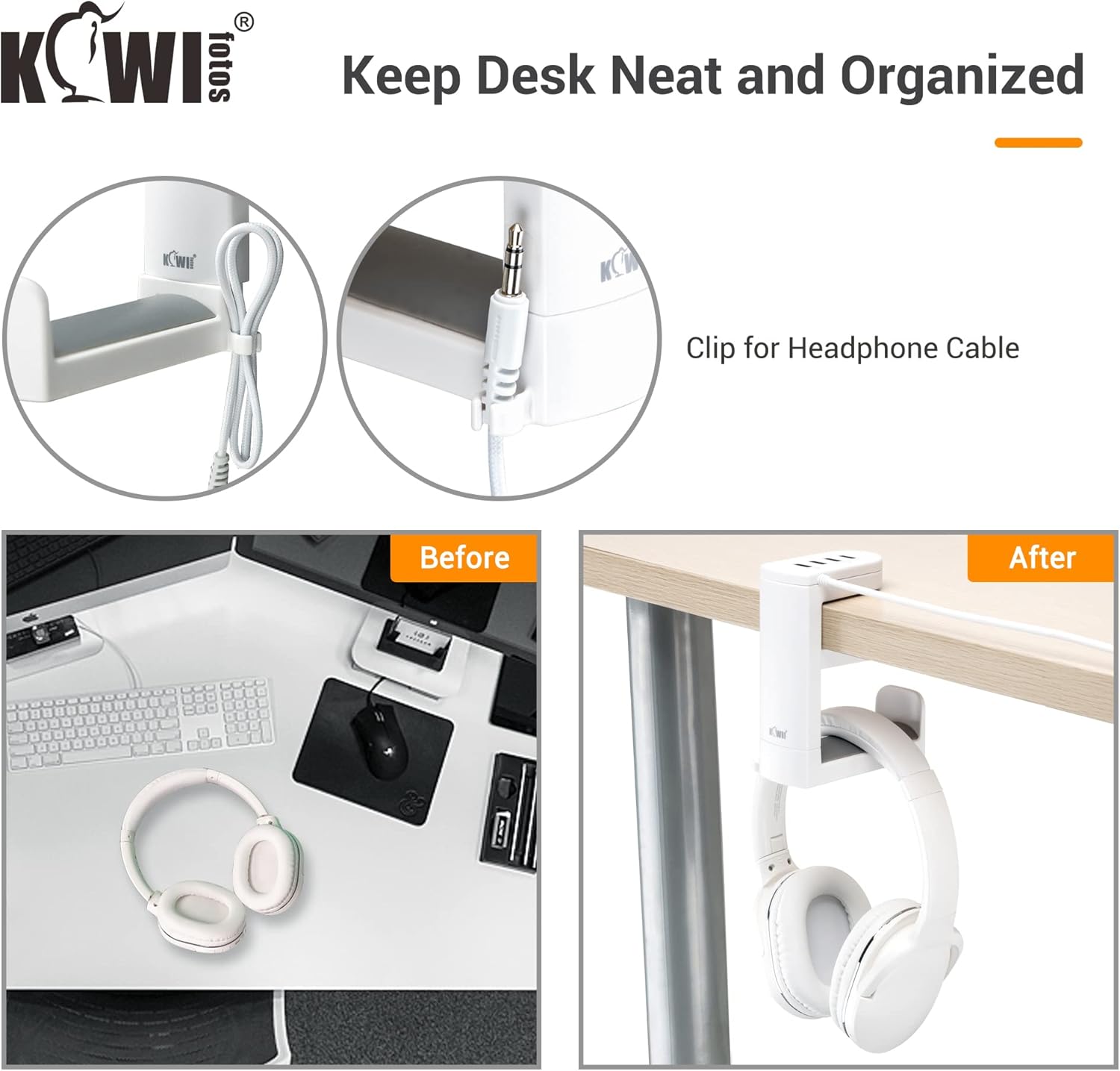 - 【Um 360° drehbarer Haken – Komfort und Vielseitigkeit】Die KIWIFOTOS Kopfhörer-Headset-Halterung verfügt über einen um 360 Grad drehbaren Aufhänger, mit dem Sie den Haken nach innen / aussen / in mehrere Richtungen einstellen können, um Platz
