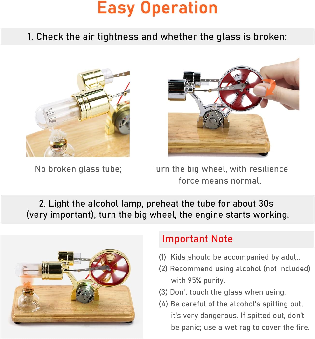 - Heissluft betrieben. Kommt mit grossem Schwungrad und LED-Perle, um die Effekte zu zeigen.