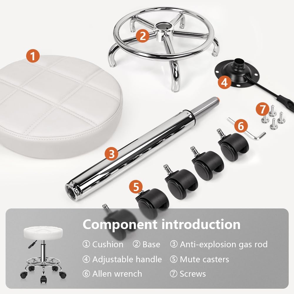 - LEICHT MONTAGE: Mit Hilfe der beiliegenden Aufbauanleitung sind der Rollhocker leicht aufzubauen.