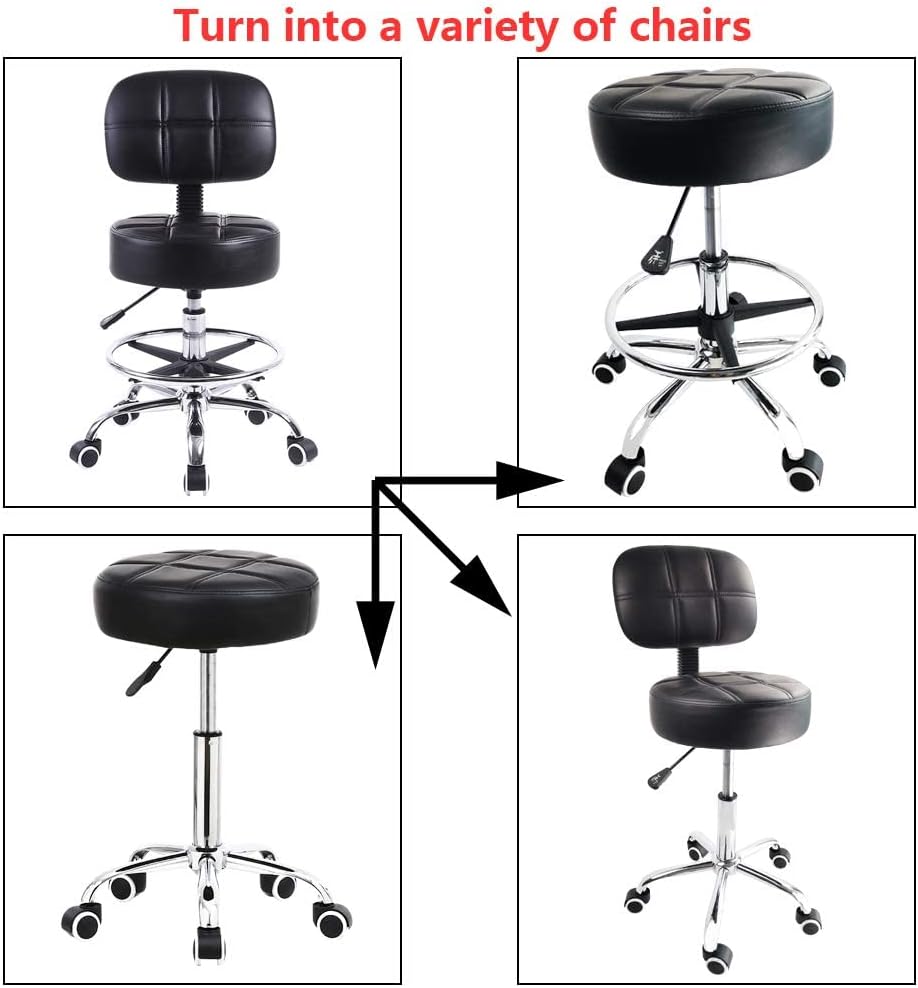 KKTONER Rollhocker Arbeitshocker mit Rückenlehne Höhenverstellbarer 53-68cm Salon Hocker PU Leder Sc