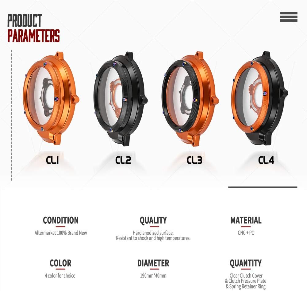 - 💡 Material: – Gute Qualität, CNC-gefräst aus massiver Billet-Legierung. - Die klare Oberfläche besteht aus PC und ist stoss- und temperaturbeständig. 💡 Im Lieferumfang enthalten: – Durchsichtiger Kupplungsdeckel – Kupplungsdruckplatte