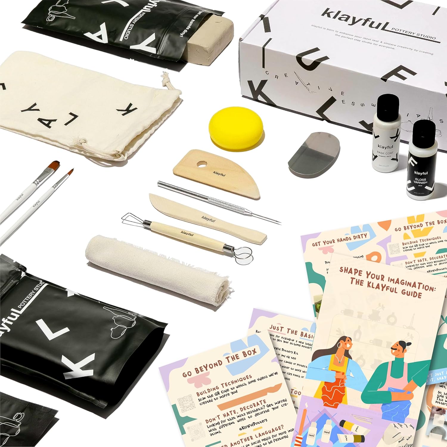 KLAYFUL Ton Töpferset für Anfänger für zu Hause - Lufttrocknend. Das Kit enthält: 3 kg weissen Ton,