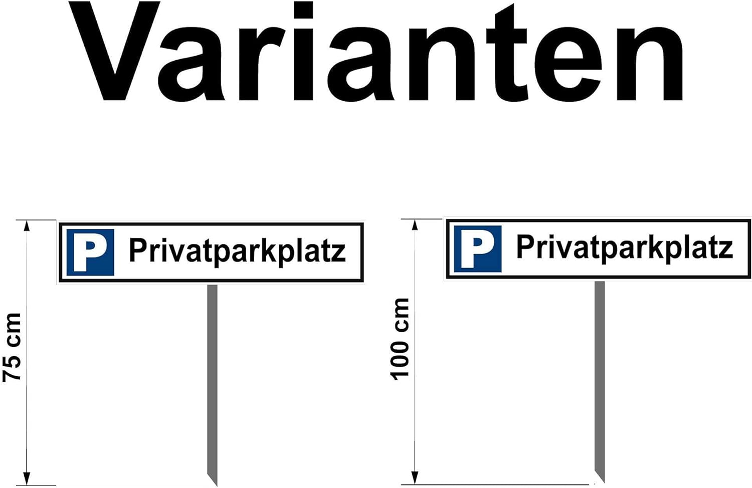 Kleberio® Parkplatz Schild - Privatparkplatz - 52 x 11 cm mit Pfosten 75 cm Privatgrundstück, Parken