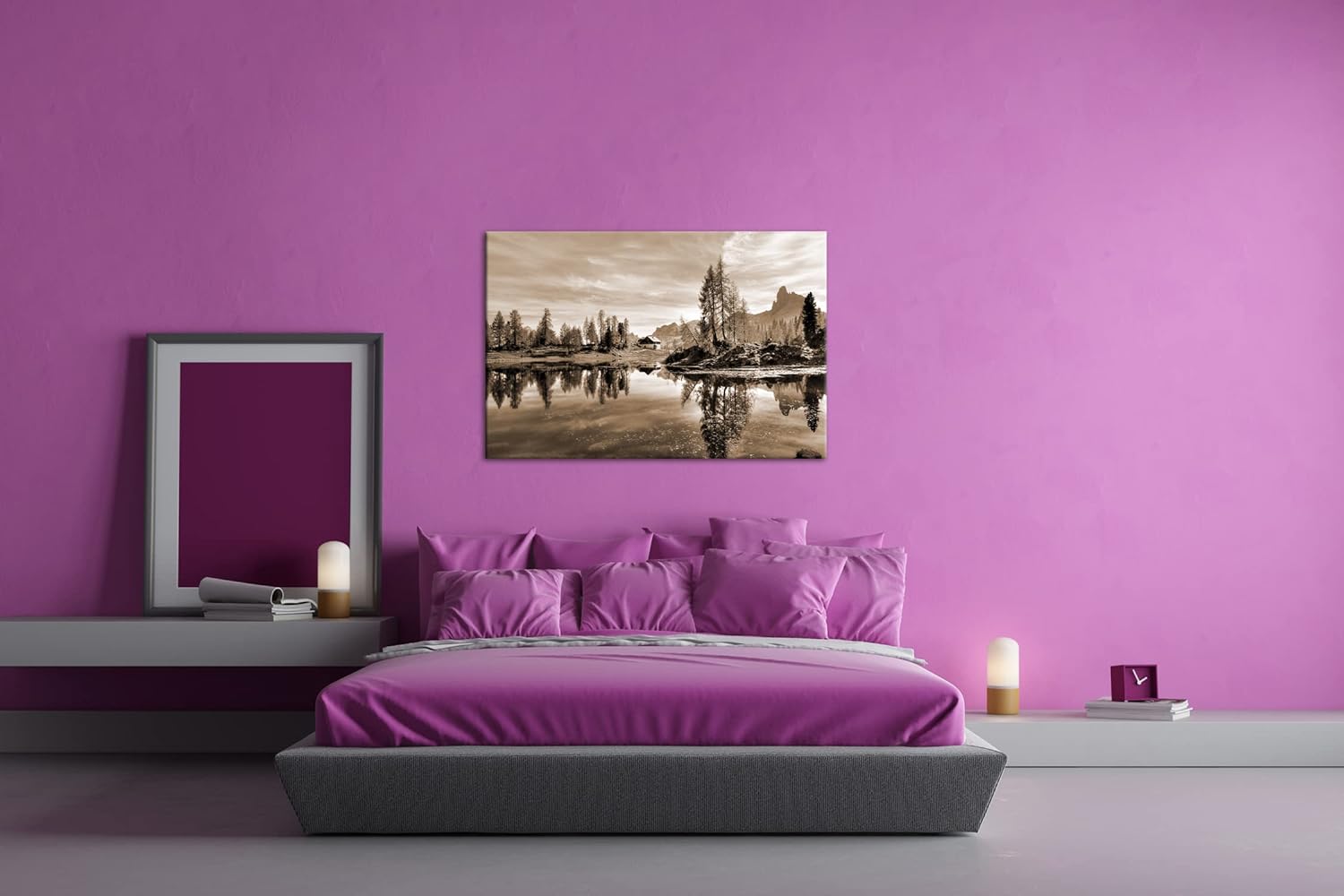 deyoli Kleiner See am Fusse des Dolomiten-Gebirges Format: 80x60 als Leinwand, Effekt: Sepia, Motiv