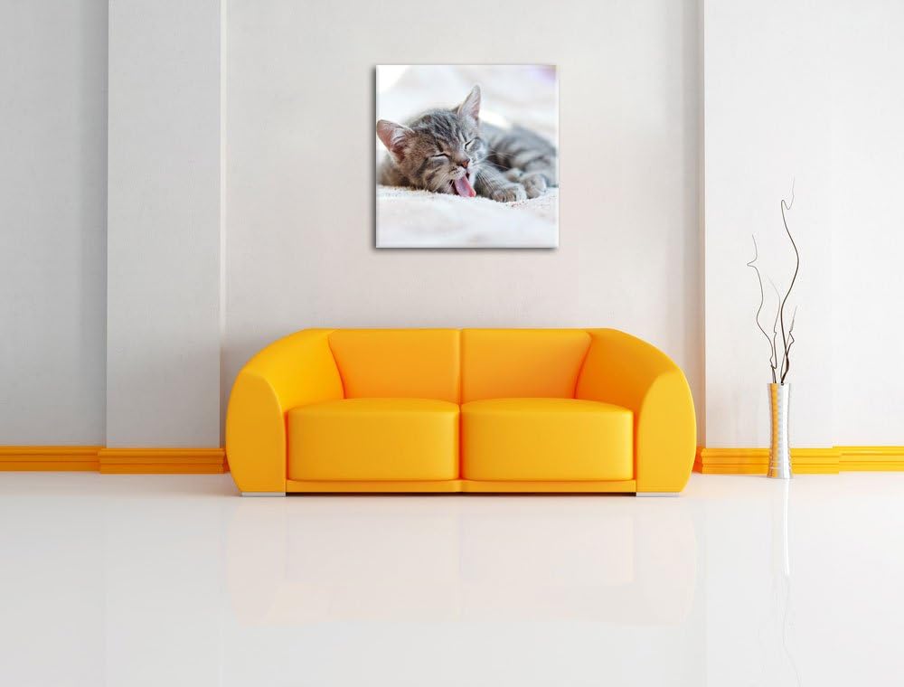 Kleines Kätzchen, Format: 70x70 auf Leinwand, XXL riesige Bilder fertig gerahmt mit Keilrahmen, Kuns