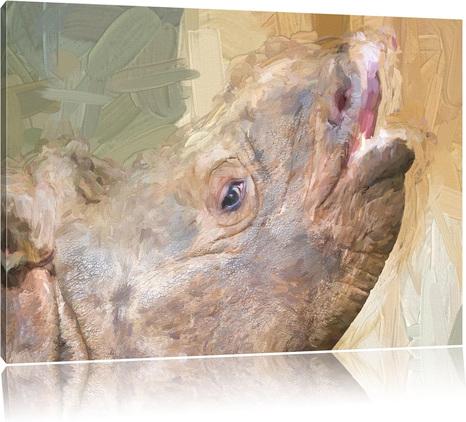 kleines Nashorn Deluxe Format: 100x70 cm auf Leinwand, XXL riesige Bilder fertig gerahmt mit Keilrah