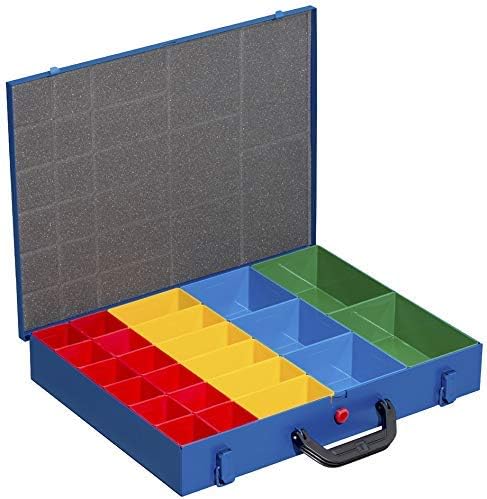 PRODUKTBESCHREIBUNGEN Eine komplette Reihe von Metallboxen für Kleinteile, die für den sicheren Transport und die Lagerung von Befestigungselementen, Kleinteilen und Zubehör entwickelt wurden. Erhältlich in vier verschiedenen Grössen und acht Konfigurationsoptionen oder als leere Boxen für benutzerdefinierte Organisation. Der 454121 verfügt über insgesamt 12 Einsteckschalen, die alle eine Grösse und Blau haben.