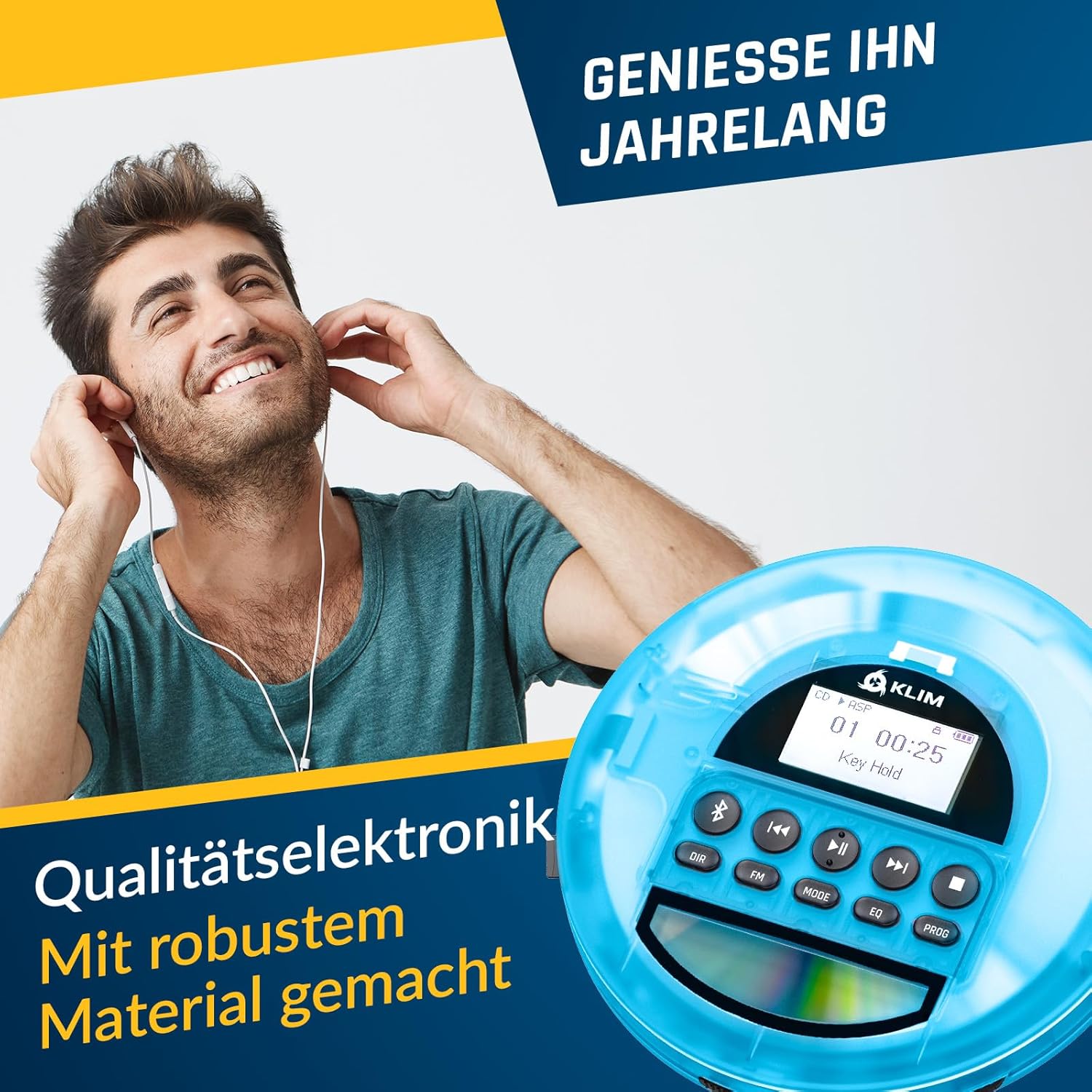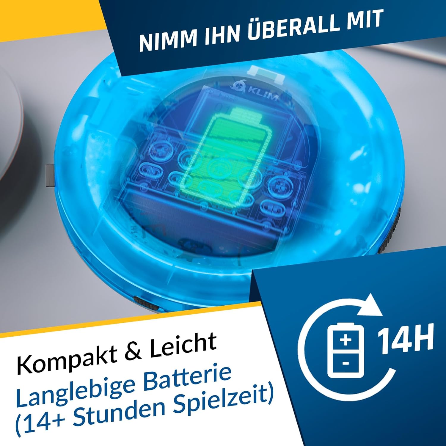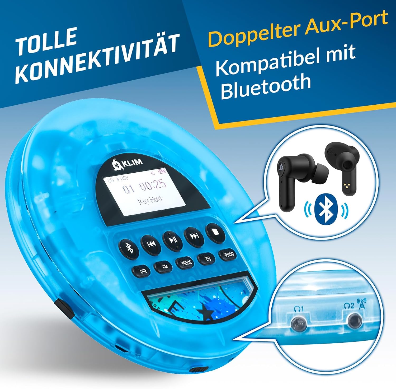 KLIM Nomad CD Player Bluetooth - Tragbarer CD-Player Discman mit langlebigem Akku - Inklusive Kopfhö