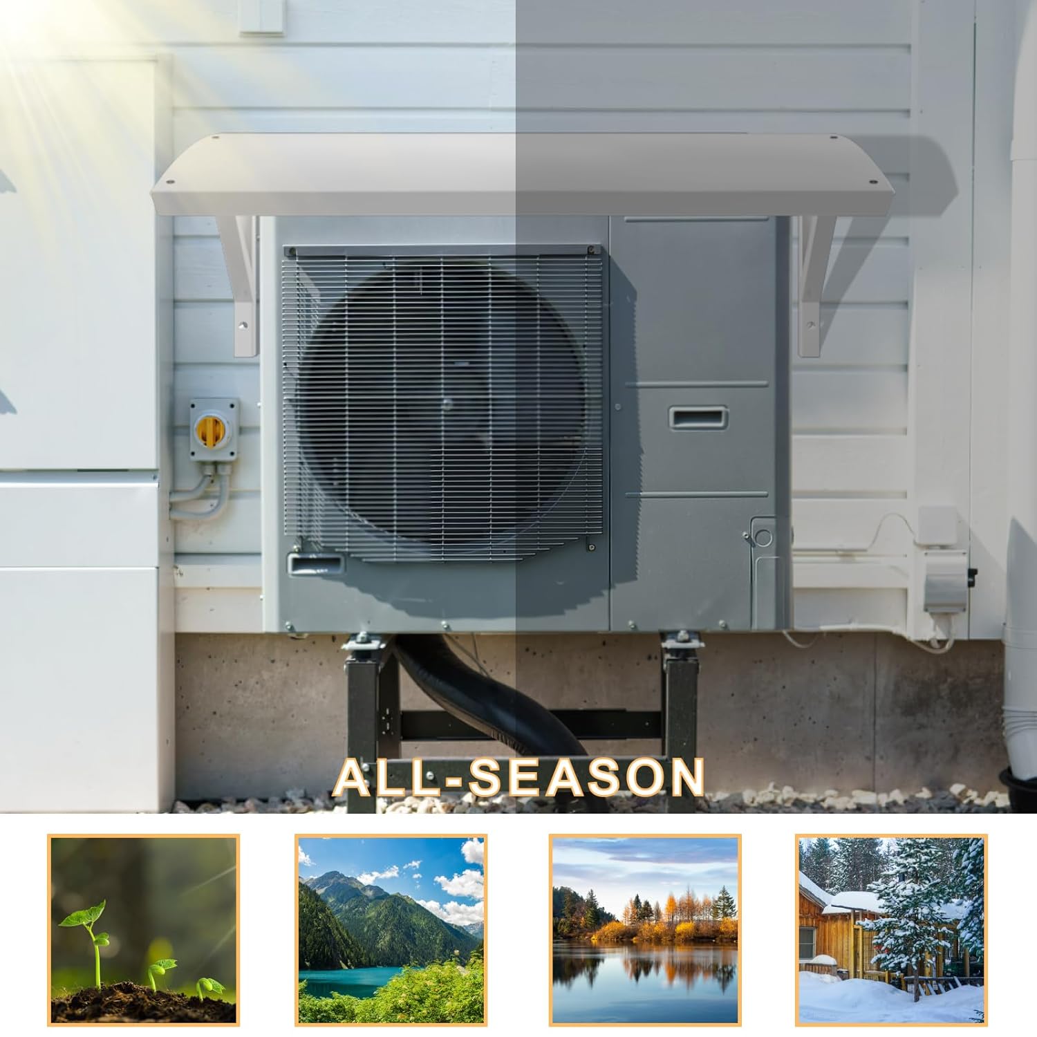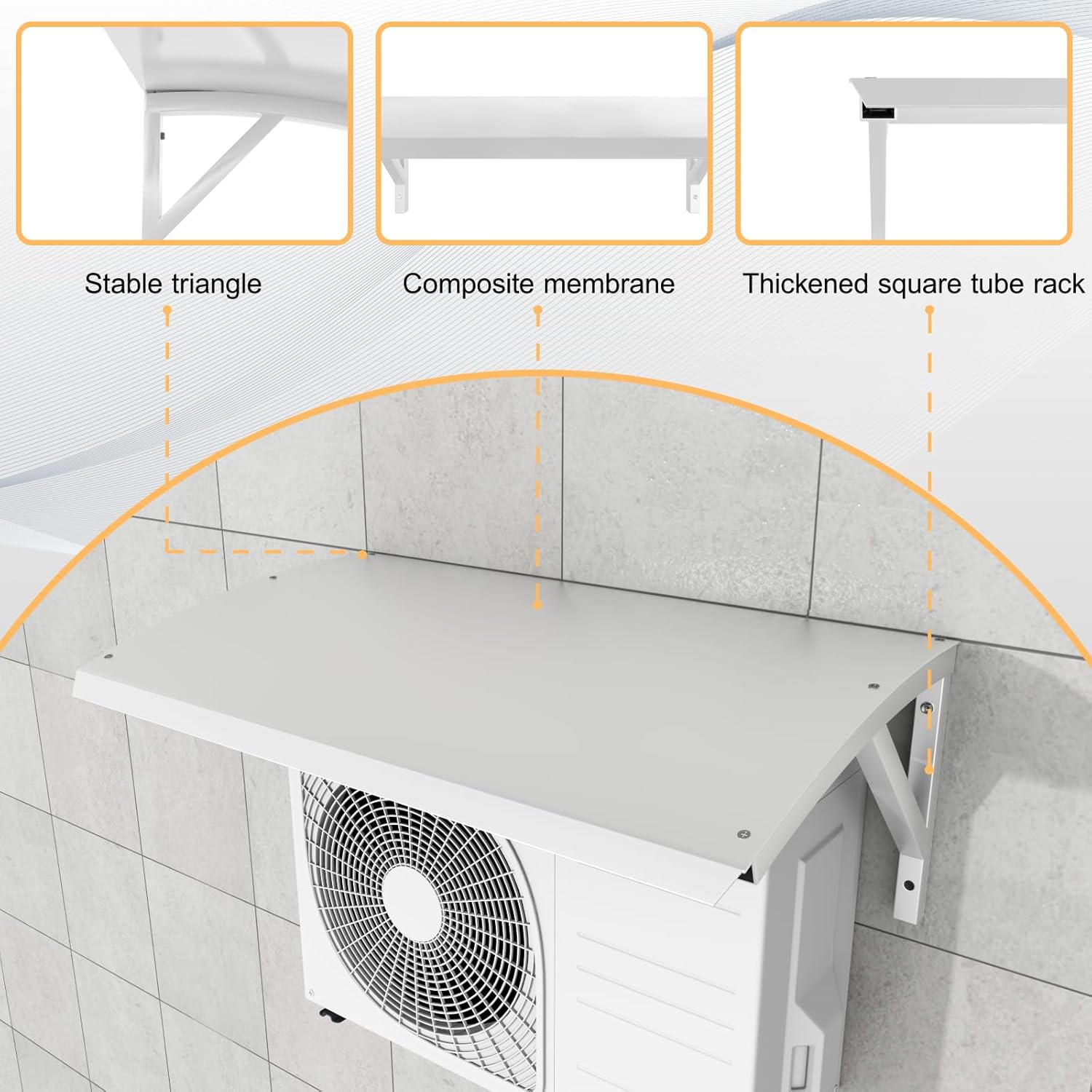 • ABDECKUNG DER KLIMAANLAGE AUSSENGERÄT: Die Abdeckung der Klimaanlage für den Aussenbereich des Klimageräts besteht aus dickem verzinktem Stahl, das Vordach der Terrassenmarkise kann den Eingriffen verschiedener Elemente widerstehen. Es ist