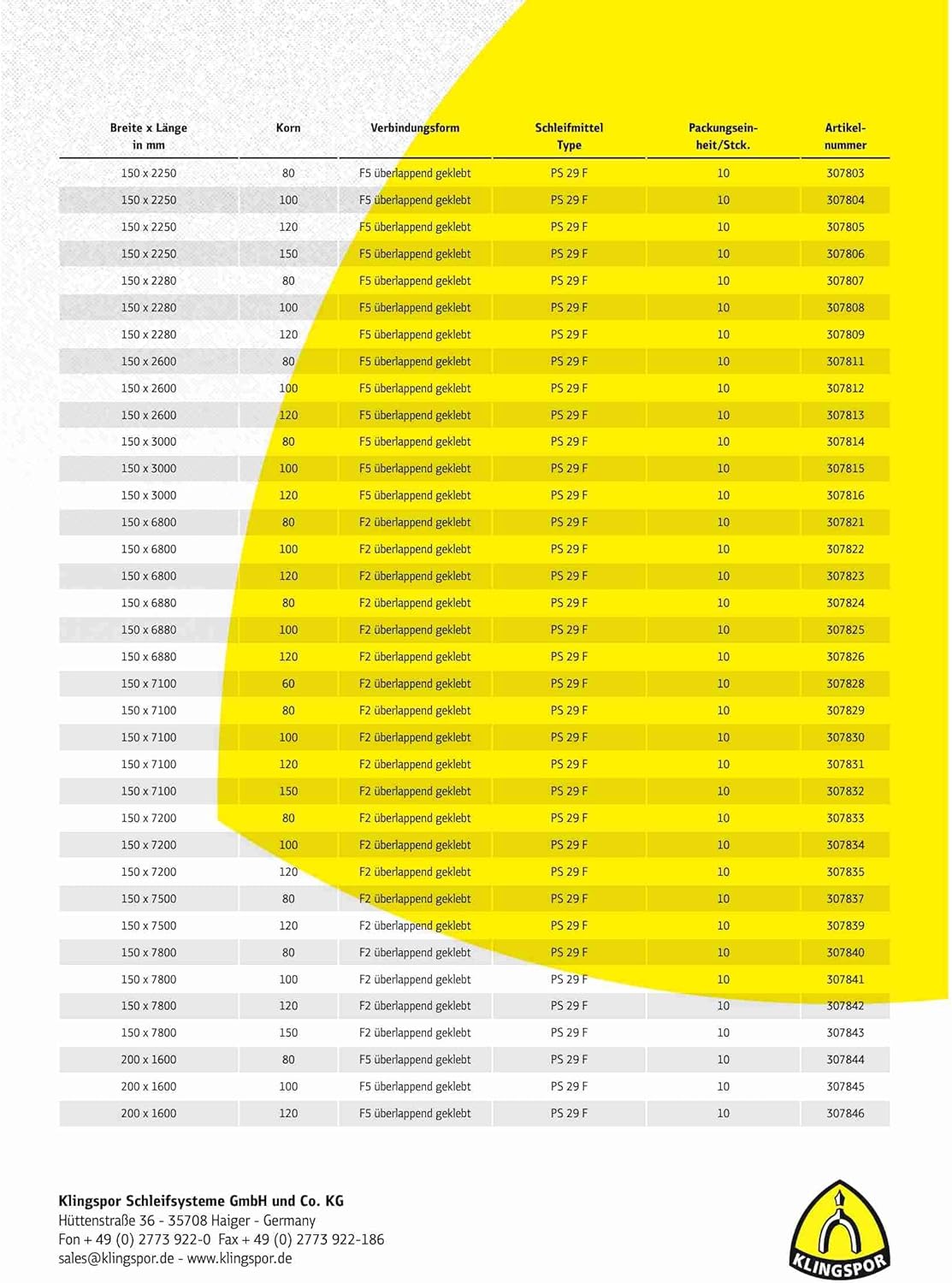 Klingpsor 307803 - PS 29 F Schleifbänder mit Papierunterlage, antistatisch, 150X2250 - Korn 80 Korn