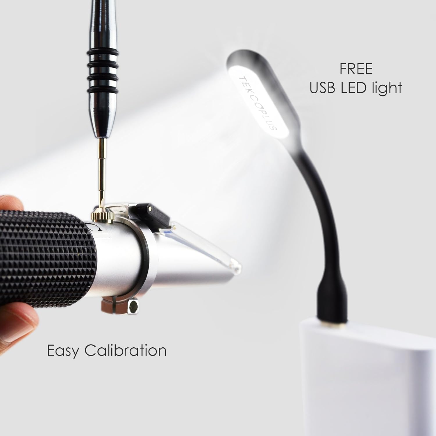 - Mit automatischer Temperaturkompensation (ATC) und einem tragbarem USB-LED-Licht