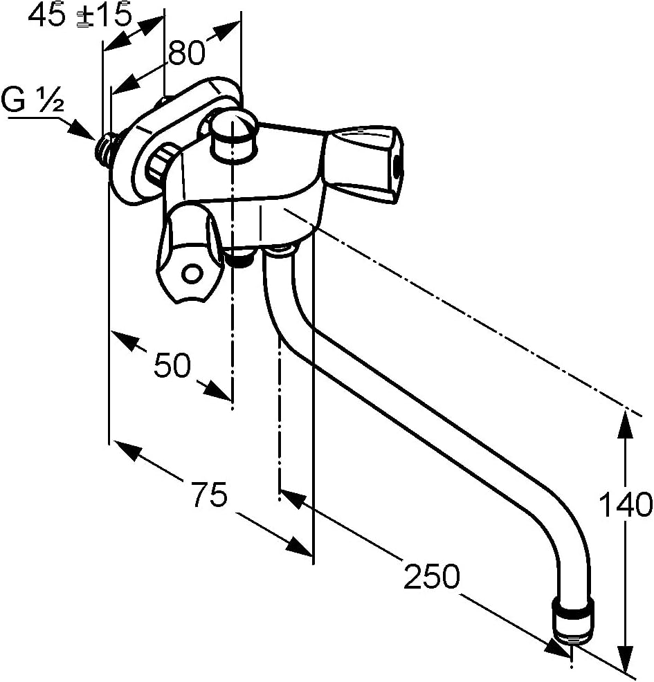 - Stichmass 45 mm, Durchflussklasse BA, schwenkbarer Auslauf 250 mm, Luftsprudler M 22 x 1,