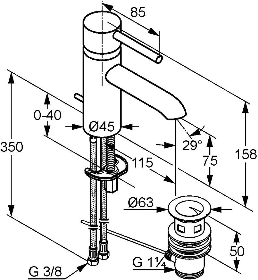 - Durchflussklasse Z, PCA Cache-Luftsprudler M 16, 5 x 1, Keramik-Kartusche mit Heisswasserbegrenzung, Ablaufgarnitur G 11/4,