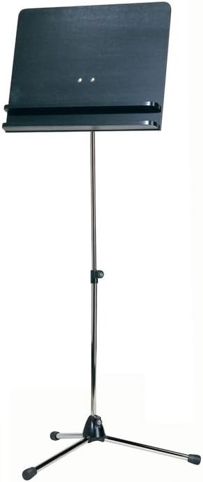 PRODUKTBESCHREIBUNGEN Wie 118/1, jedoch Notenpultplatte mit zusätzlichem Ablagewinkel. Spezifikationen: - Gewicht: ca. 5,0 kg - NA: 21.65 x 440 mm - H: 615/1150 mm. - Stativ vernickelt, Holzplatte schwarz