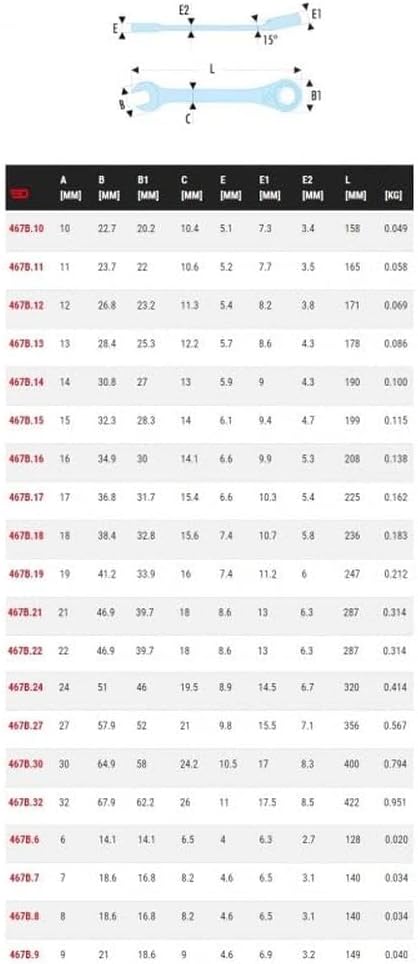 - Technische Daten:|A [mm]: 22|B [mm]: 46,9|B1 [mm]: 39,7|C [mm]: 18|E [mm]: 8,6|E1 [mm]: 13|E2 [mm]: 6,3|L [mm]: 287|[kg]: 0,314