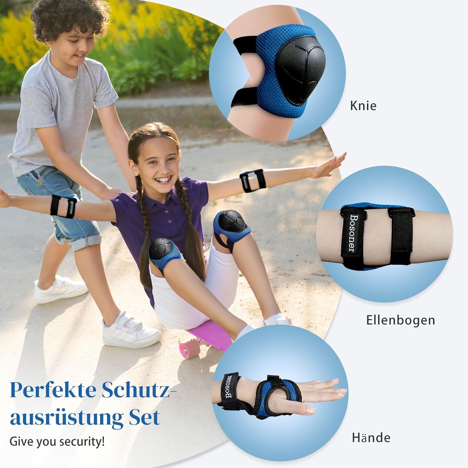 - SCHUTZ: Die knieschoner kinder sind ideal für Kinder beim Outdoor-Skaten, Skateboarden und Radfahren und bieten einen perfekten Rundumschutz für Ihr Kind. Das Set besteht aus Knieschoner Kinder, Ellbogenschoner und Handgelenkschoner und BOSONER liefert