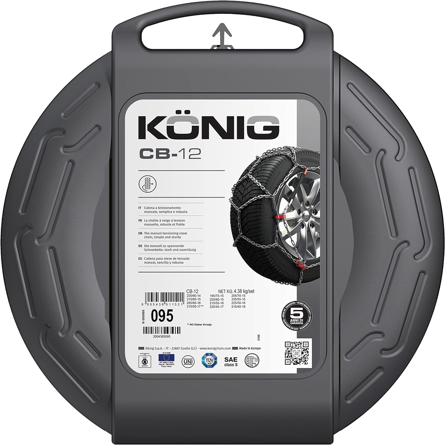 - 12 mm Kettengliederstärke. Manuelles Spannsystem: ein Stopp zum Anbringen und ein Stopp zum Spannen der Kette. Geschlossene Verkürzungshaken vermeiden ein Verdrehen der Kette.
