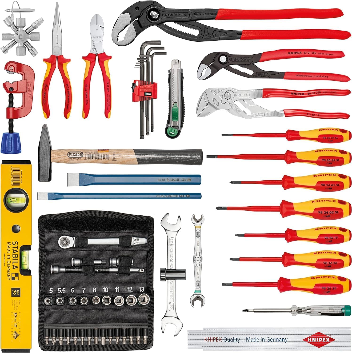 • Bestückt mit 13 KNIPEX-Werkzeugen, insgesamt 52 Markenwerkzeugen, teilweise VDE-geprüft nach DIN EN 60900