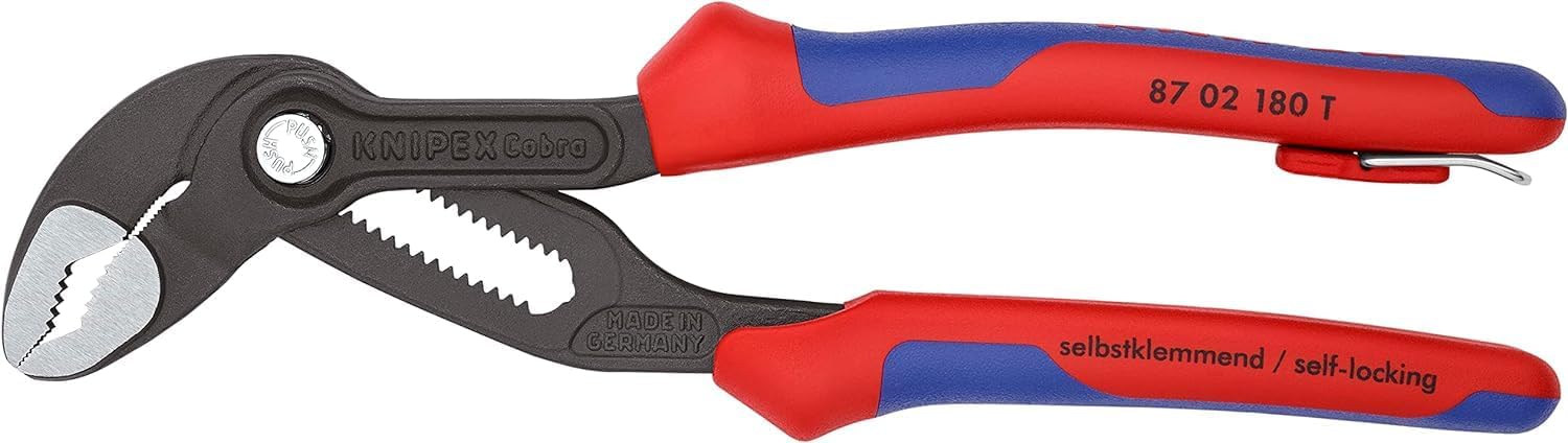KNIPEX Cobra, Wasserpumpenzange | Rohrzange mit 2K-Griffen und Befestigungsöse, Chrom-Vanadium, atra