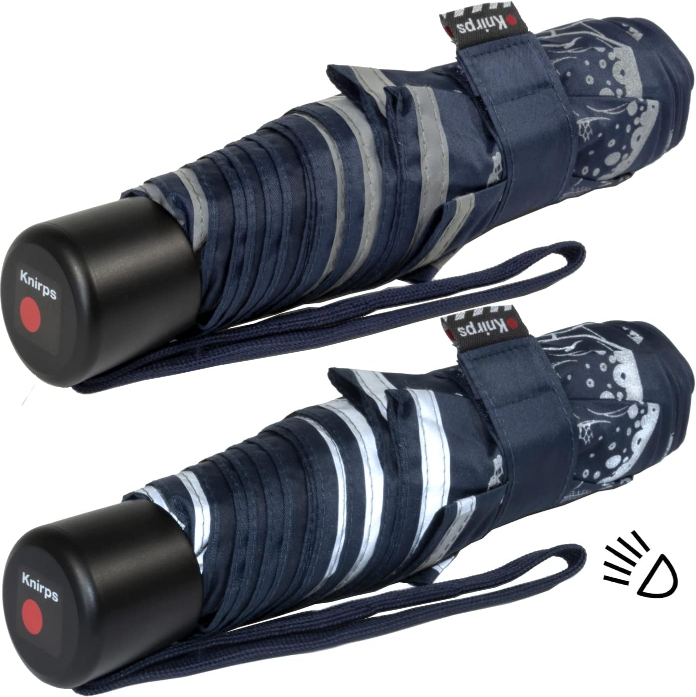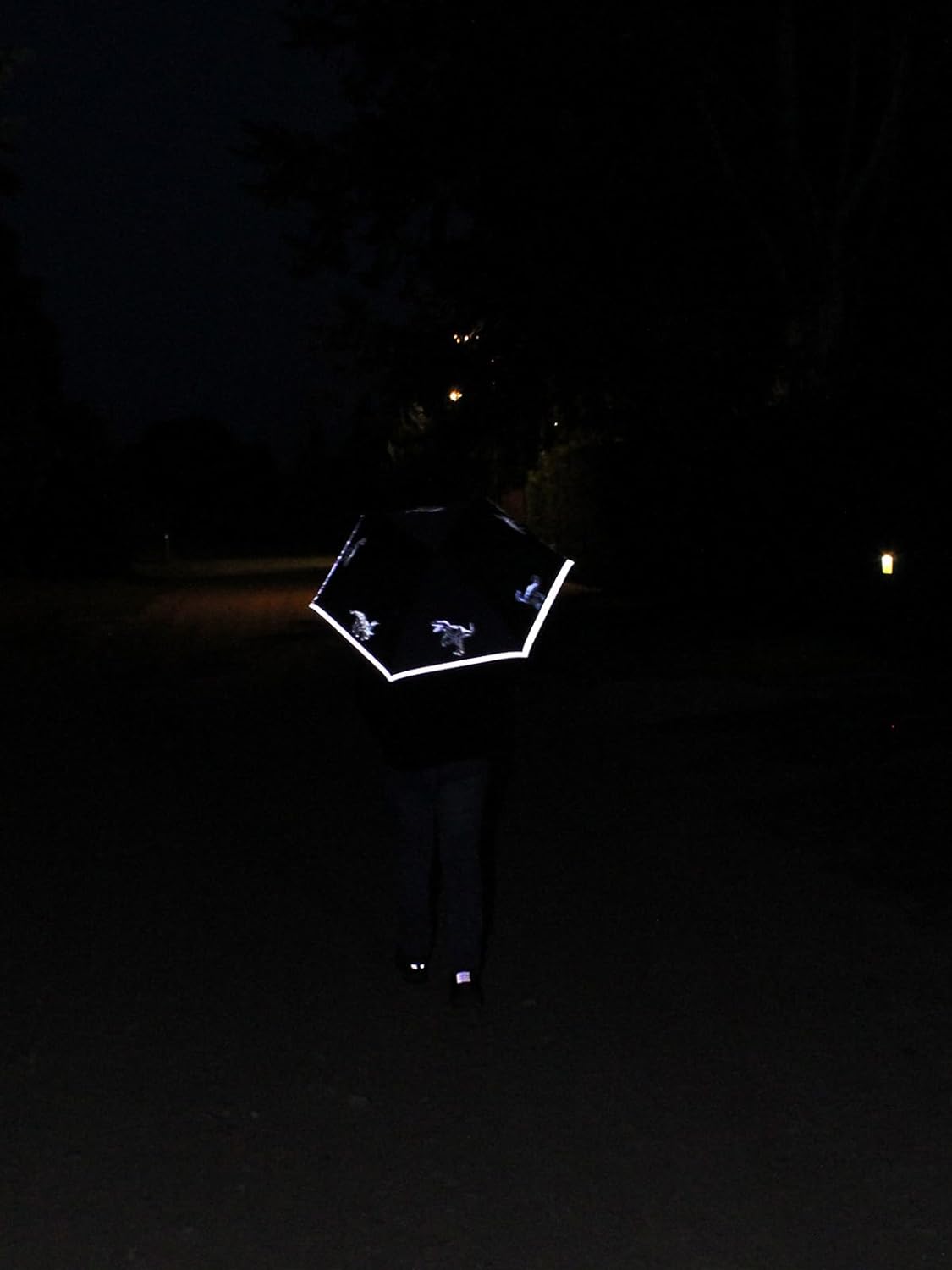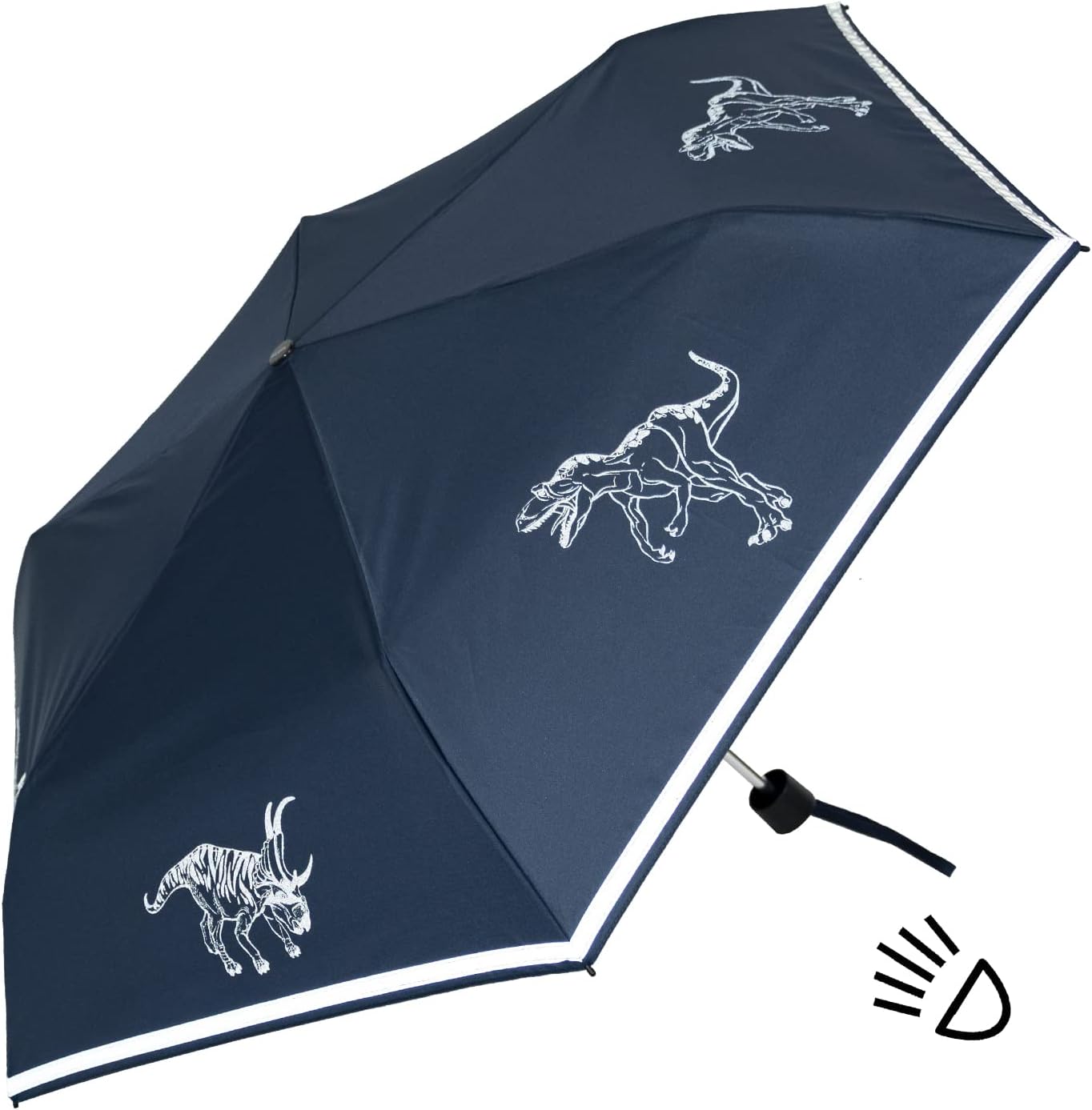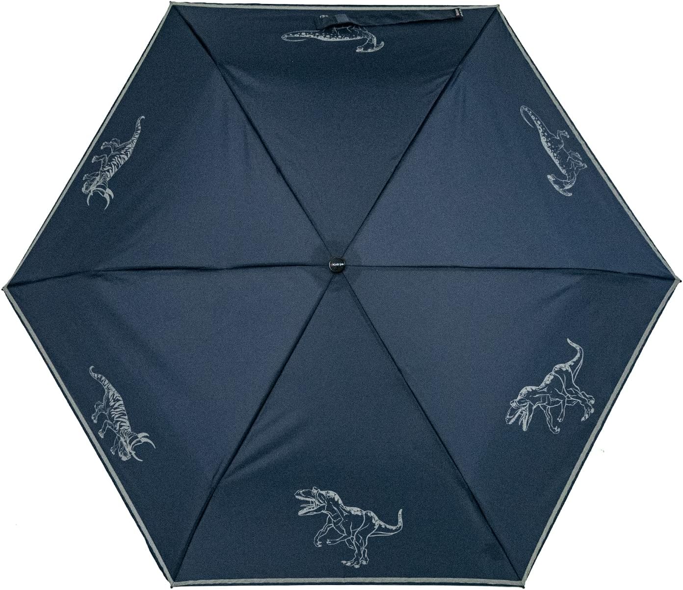 • 🤩 DAS HIGHLIGHT – Die ebenfalls reflektierenden Dinos sind das optische Highlight dieses dunkelblauen Taschenschirms. Dieser Effekt macht ihn in der Dämmerung zu einem echten Eyecatcher.