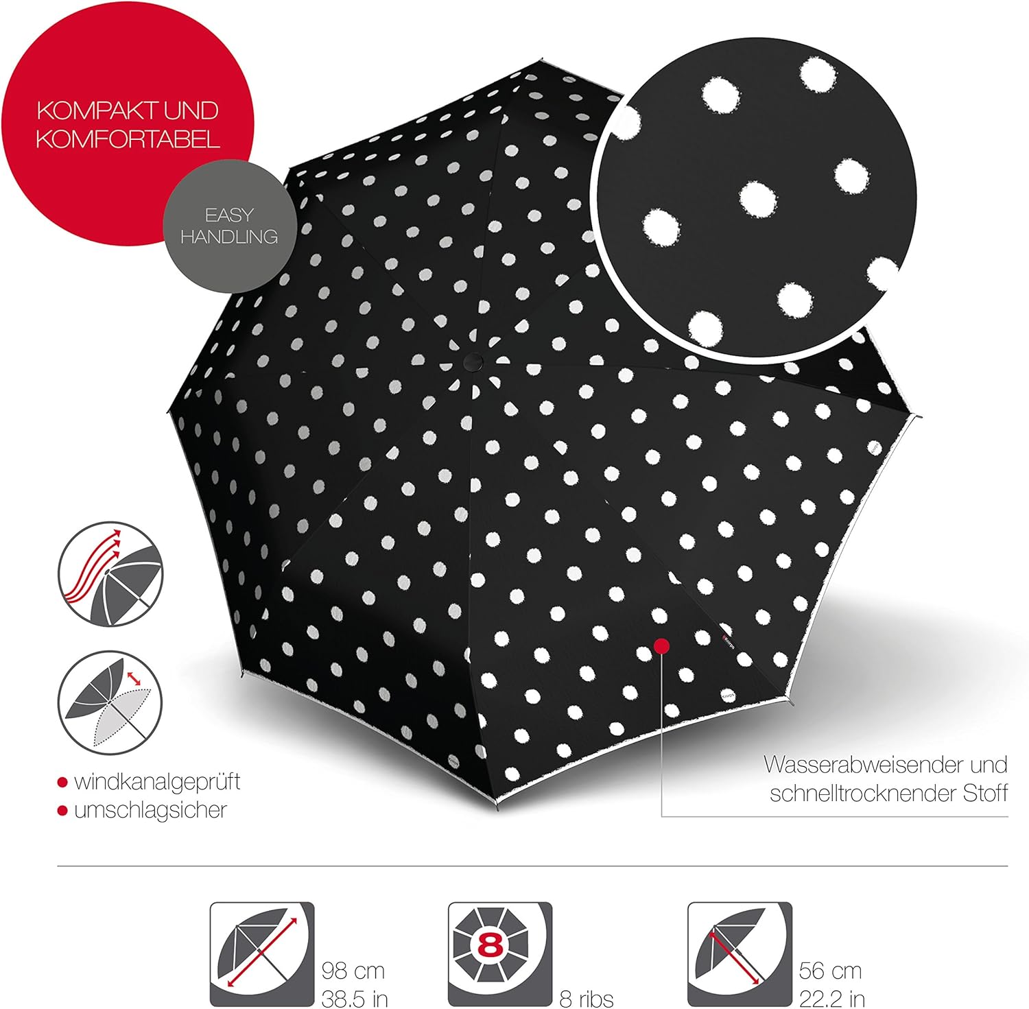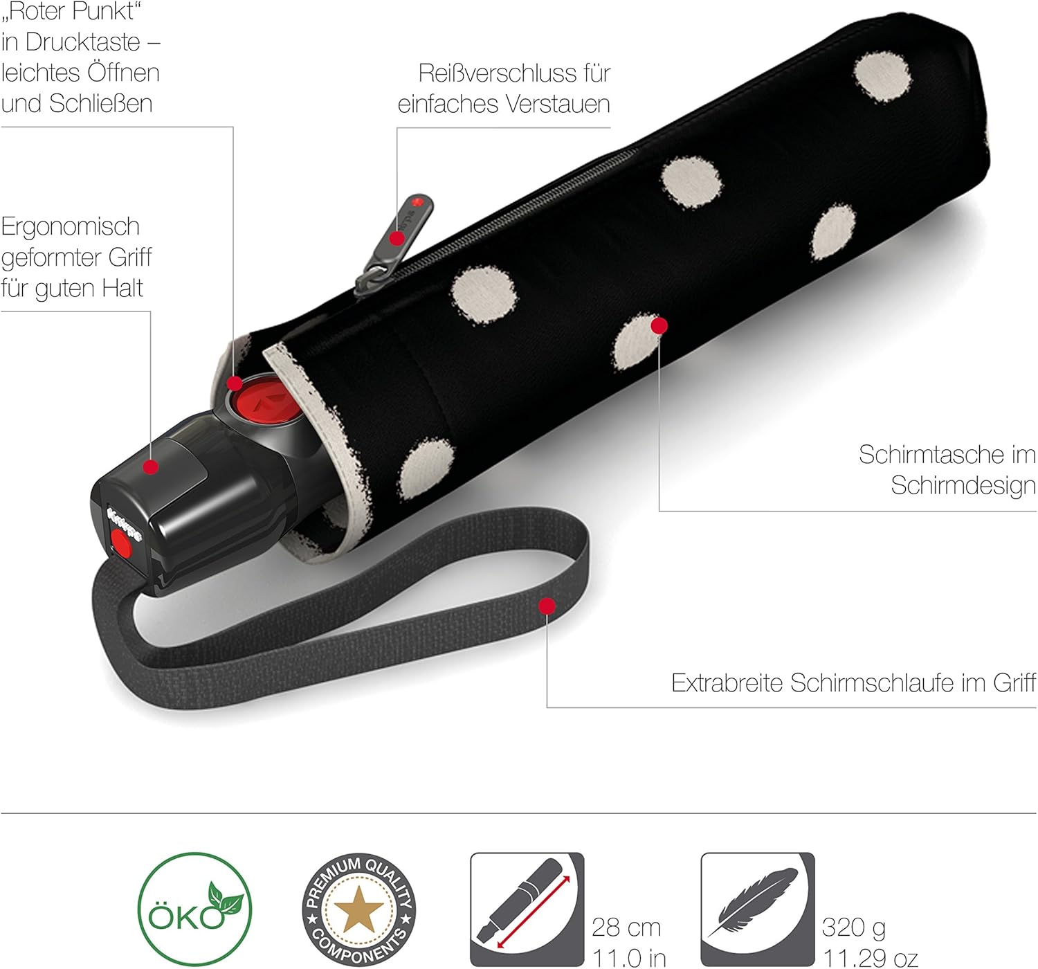 - DESIGN durch hohe Wiedererkennbarkeit - der Schirm mit dem roten Punkt als Qualitätssiegel der Marke Knirps