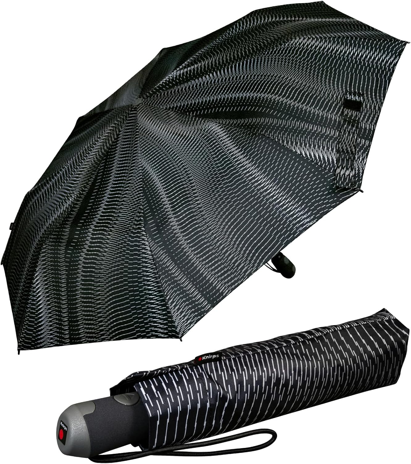 - Dieses Modell mit filigranem Striche-Muster aus dem Hause Knirps ist der ideale Begleiter an grauen Regentagen. Der Taschenschirm überzeugt mit einer leicht zu handhabenden Auf-Zu-Automatik, einer hochwertigen Verarbeitung und einem komfortablen Griff
