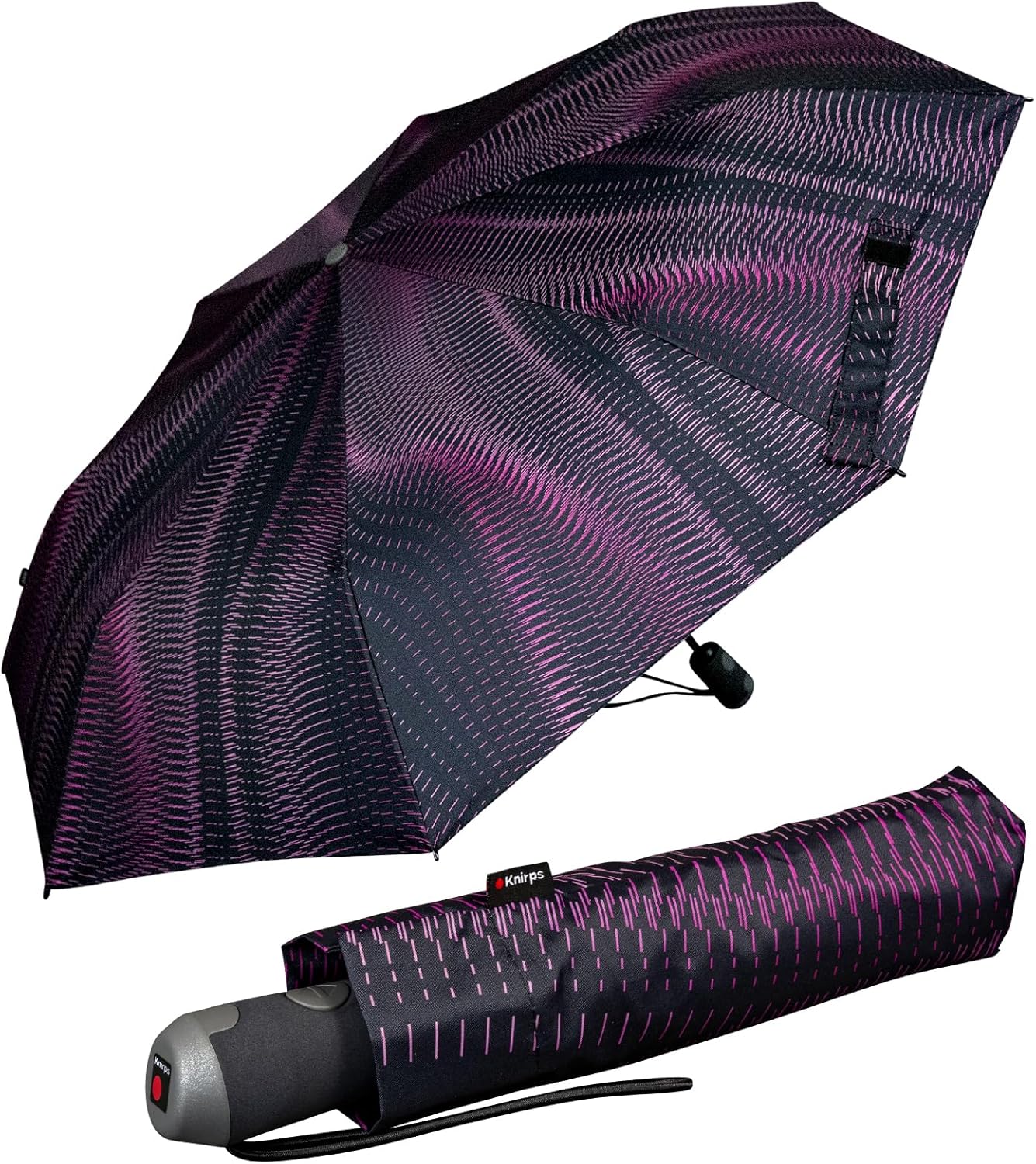 - Dieses Modell mit filigranem Striche-Muster aus dem Hause Knirps ist der ideale Begleiter an grauen Regentagen. Der Taschenschirm überzeugt mit einer leicht zu handhabenden Auf-Zu-Automatik, einer hochwertigen Verarbeitung und einem komfortablen Griff