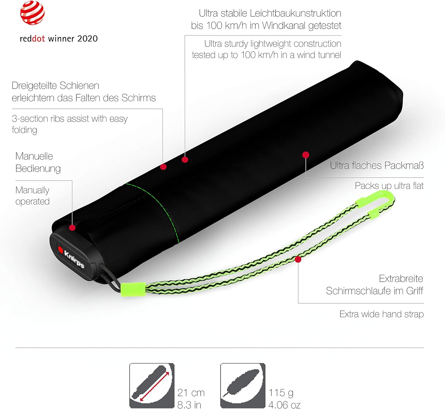 - Lieferumfang: Knirps Taschenschirm Ultra US.050 Slim Manual und eine passende Schutzhülle