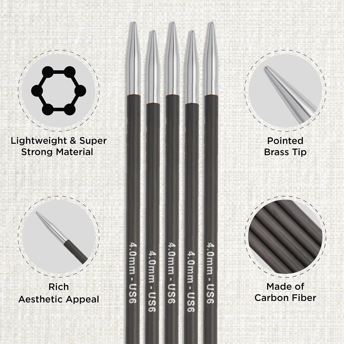 • HOCHWERTIGE MATERIALIEN: Die schwarzen Stricknadeln bestehen aus langlebigem Carbon, während die scharfen und sich allmählich verjüngenden silbernen Spitzen für Präzision bei den unterschiedlichsten Strickprojekten sorgen