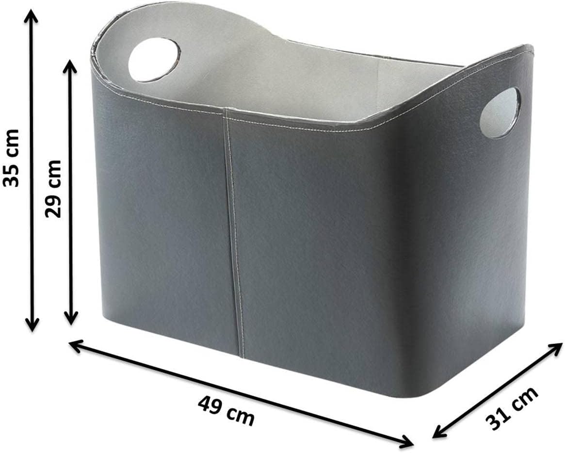 Kobolo Holzkorb für Kaminholz Aufbewahrungskorb - Kunstleder - grau - 49x31x29/35 cm, Grau