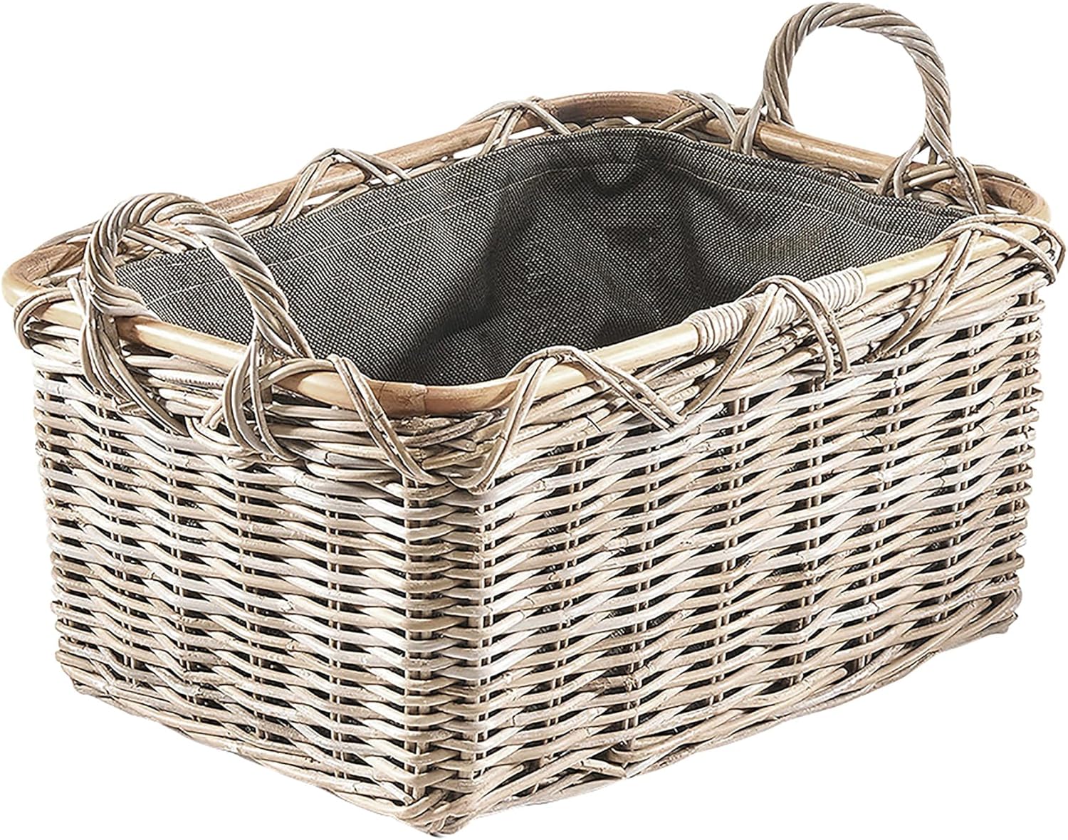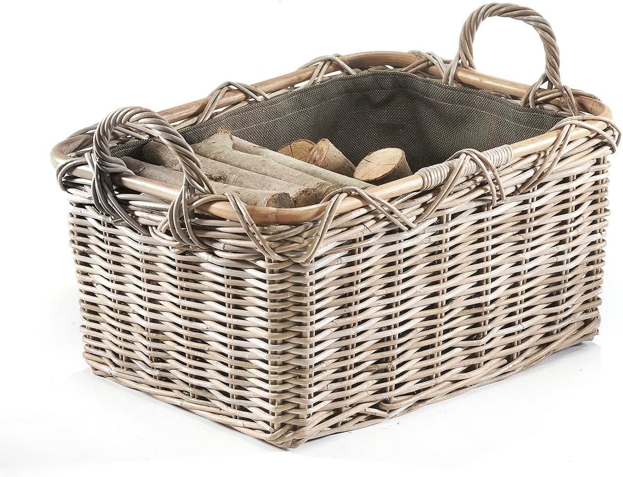 - Rechteckiger Holzkorb/Kaminholzkorb in der Trendfarbe Kubu grey mit 2 Griffen für hohen Komfort beim Tragen