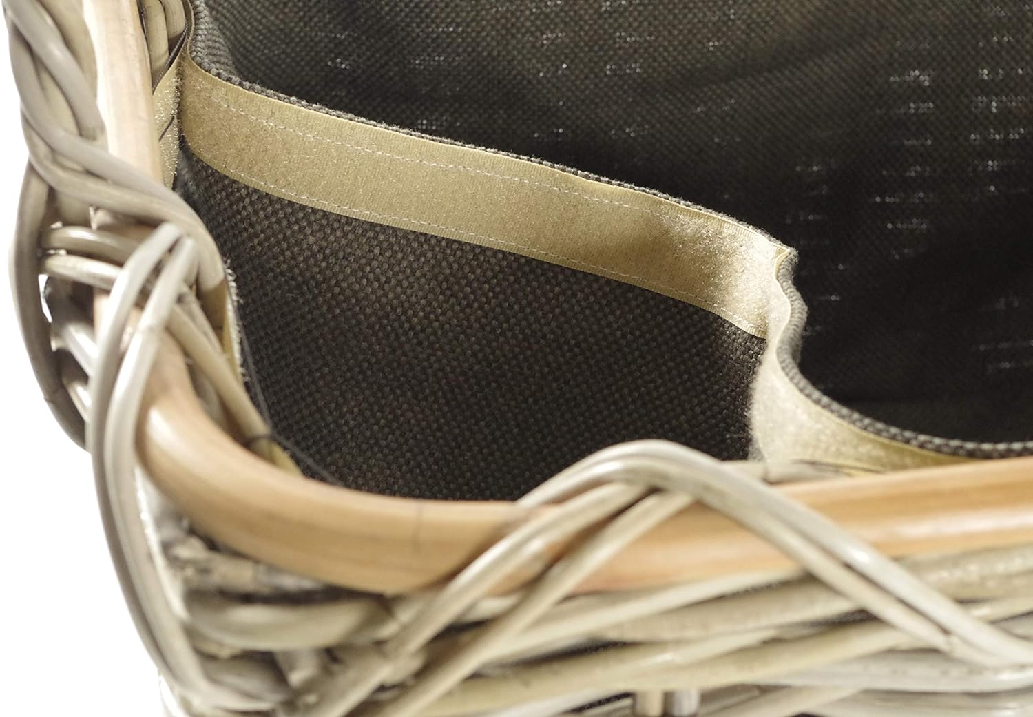 - Der moderne Korb ist zusätzlich mit dunklem Stoff ausgeschlagen zum Schutz der Wohnung vor Holzrückständen