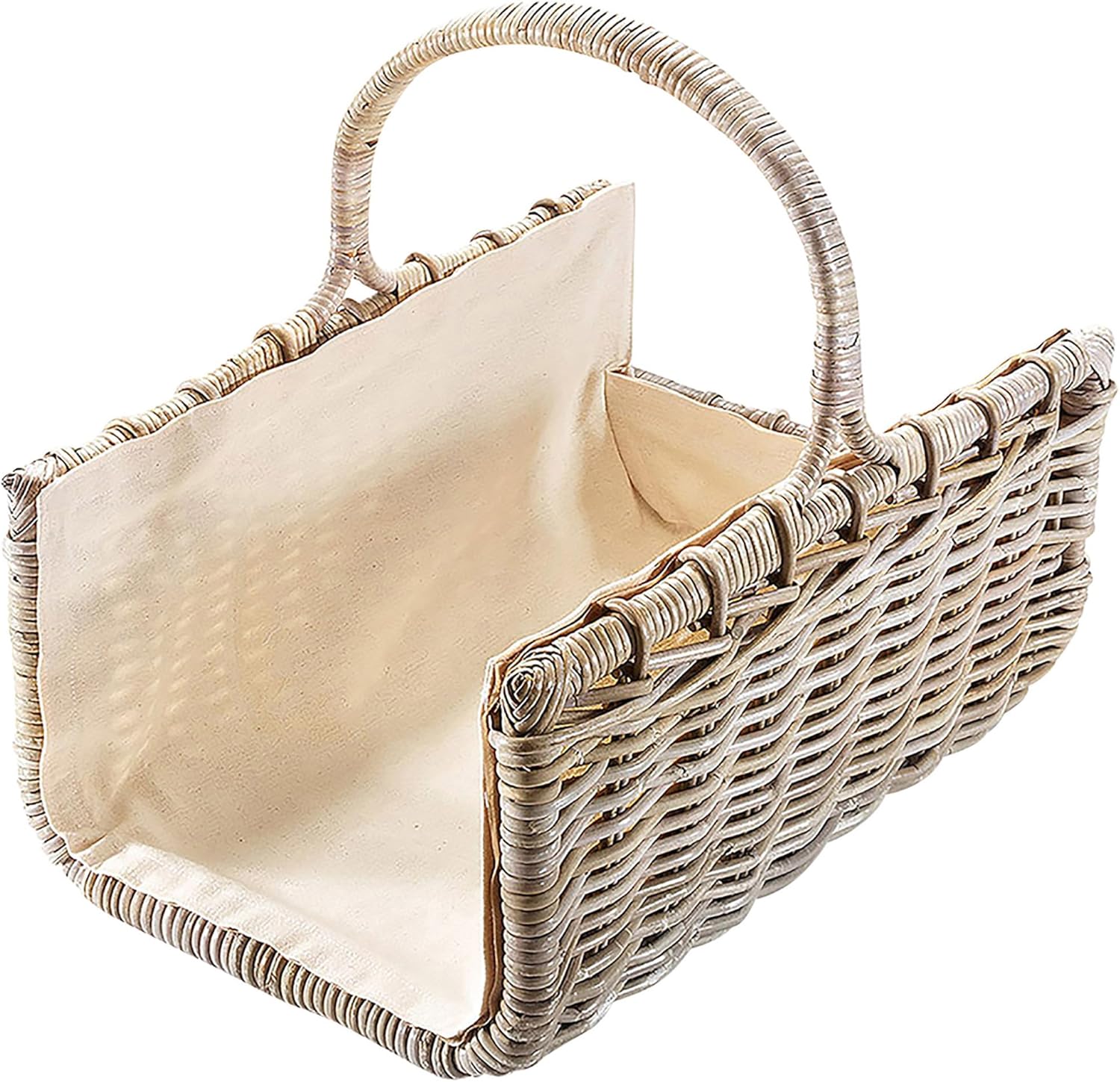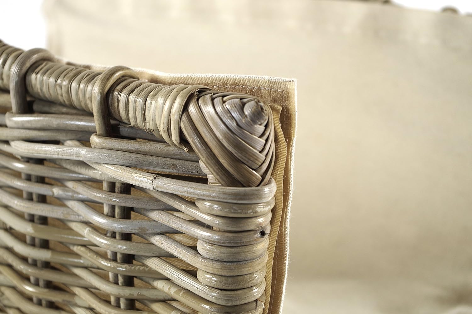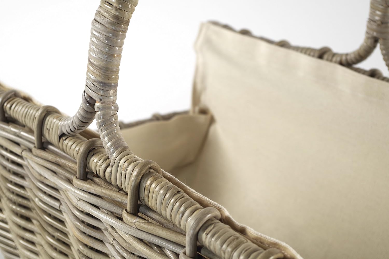 - Dekorativer Kaminholzkorb aus grauem Rattan von Kobolo, stabile Ausführung zur Aufbewahrung von Kaminholz, ausgeschlagen mit Leinenfutter zum Schutz Ihrer Wohnung vor Holzrückständen