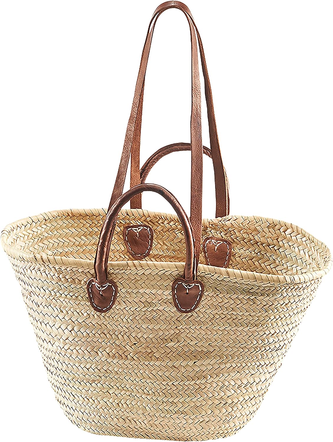 - Ibiza-Tasche von Kobolo, in 100% Handarbeit rustikal und robust aus Palmblatt geflochten mit langen Schulterhenkeln und zwei zusätzlichen Griffen aus Echt-Leder